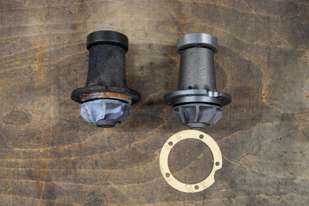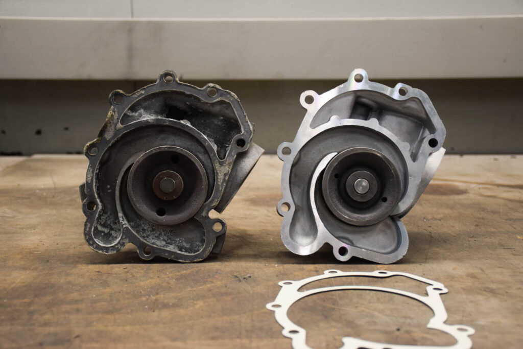 In de praktijk zien wij de waterpomp regelmatig voor problemen zorgen bij de 107-motoren, zowel bij de 6-cilinders als de 8-cilinders. Vaak met panne als gevolg. Het begint meestal met een druppel water op de grond, vooraan de motor. Dat lijkt onschuldig. Meestal wordt het niet opgemerkt of gewoon genegeerd. Onze ervaring is echter dat zodra er één druppel uit de waterpomp lekt, het snel kan escaleren. Vaak heb je vanaf die eerste druppel slechts 100 km nodig vooraleer het echt begint te stromen en je niet meer verder kan rijden.